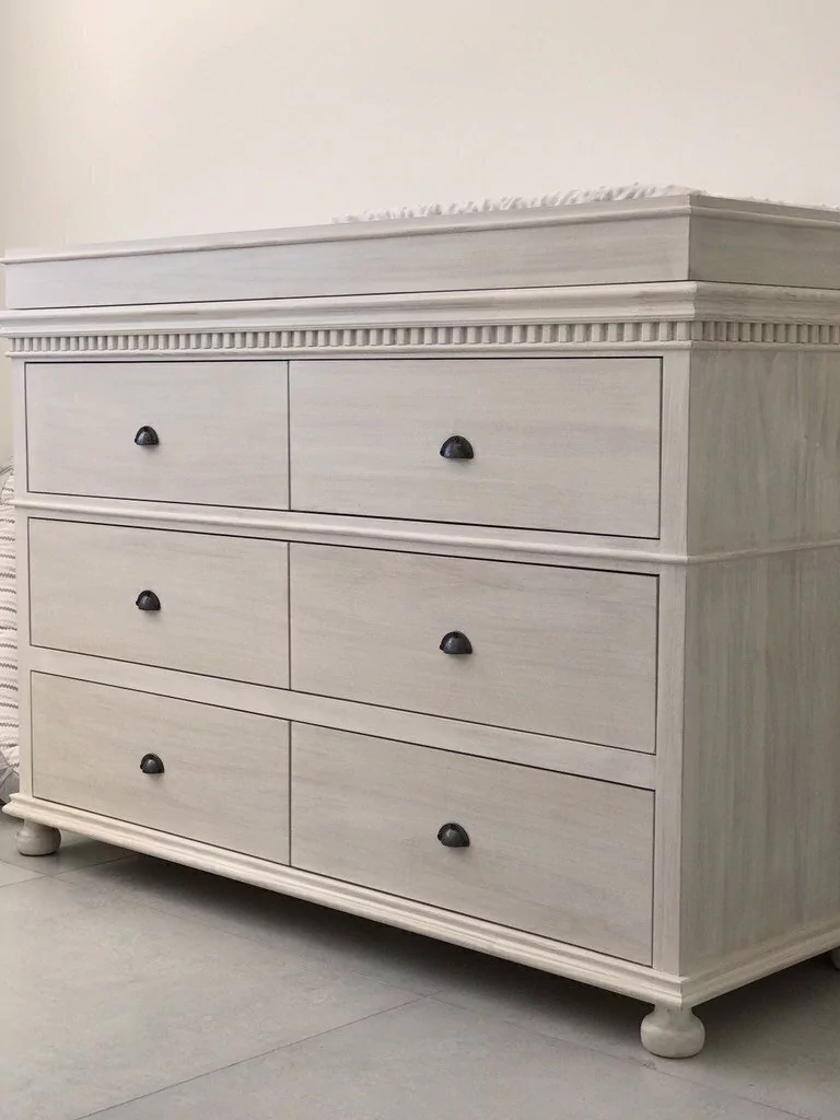La Cómoda Isabella Doble está hecha en Madera, podemos hacerla con lustre natural o patinarla en el color que más te guste , viene con seis, siete u ocho cajones. La medida standard es: 140 x 50 x 90, pudiendo hacerla en el tamaño que vos quieras.