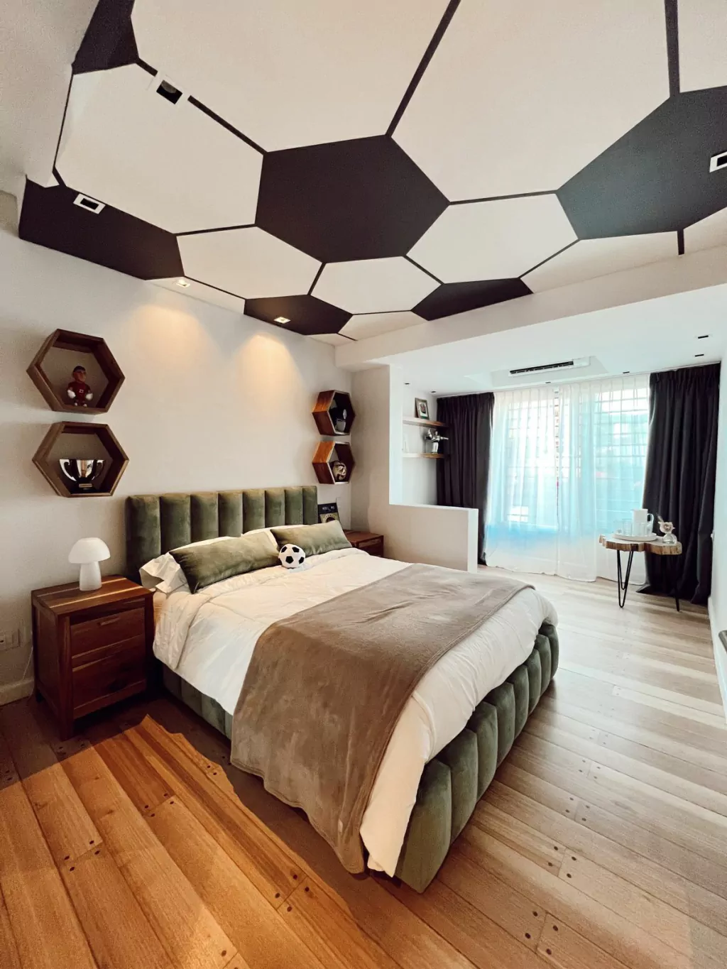 En este caso, es un proyecto integral, donde nos basamos en los gustos de nuestro cliente, Ellos querían un dormitorio que hable de futbol así que adaptamos ese concepto a un dormitorio super funcional!